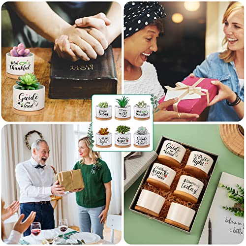 6 Pcs Christian Bible Verse Gifts Set Funny Succulent Plant Pot with Bamboo Tray Ceramic Funny Planter Succulent Accessories Cute Plants Pots for Women Teacher Coworker Birthday Gifts (Bible Style)