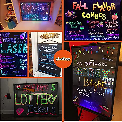 Woodsam LED Drawing Painting Board - 24" x 16" Erasable Non Porous Glass Surface with 8 Fluorescent Window Markers-Best for Chalkboard Blackboard Whiteboard Bulletin/Letter/Spelling/Display/Menu Board